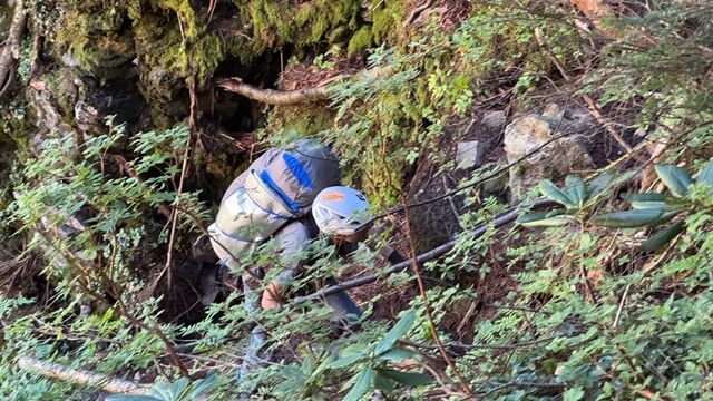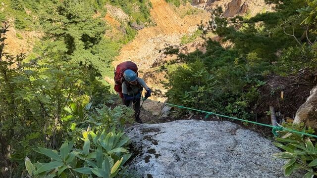 登りは第1吊橋を経てガンダム岩を通過しそれなりに大変な思いをしてここに至ると戻りたくない気持ちになるだろう。ここを通過できれば登れるという意識が高くなりどうしても無理をしてしまう可能性がある。むしろ第1吊橋で無理なら戻る意識になるのだが。