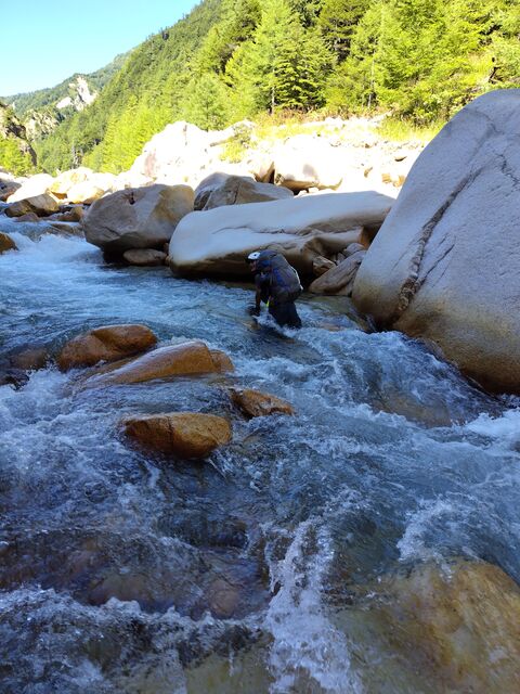 ちょっと深いとこにハマって動けず、水流で持っていかれそう。
